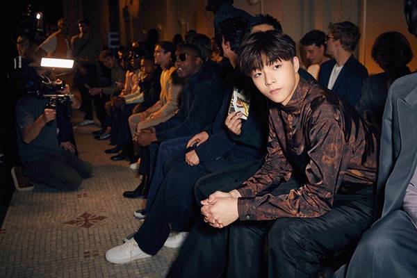 帅气现身秀场的陈立农一改往日运动休闲穿搭,身着胡桃木花纹丝质衬衫,传统与现代并行不悖,充满别样质感。下身搭配丝质开叉长裤,宽松剪裁灵动飘逸,将其长腿完美修饰。整体造型充满优雅风度,彰显去繁就简的成熟智慧,简约不简单,气场十足,与品牌玩趣务实的理念完美契合,闪耀迷人光芒。